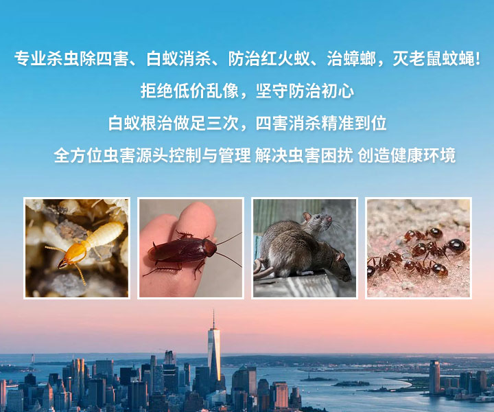 公司主要承接:佛山三水白蚁防治,白坭新建房屋预防白蚁工程,西南室内装修预防白蚁工程,三水杀灭白蚁,云东海房屋杀白蚁,乐平家庭杀灭白蚁服务,大塘厂区仓库灭治白蚁工程,范湖住宅小区、花园别墅灭治白蚁工程,西南水库堤坝白蚁防治,园林、古树白蚁防治。三水四害消杀,除四害(蚊、蝇、蟑螂、老鼠)消杀工程,大塘厂区四害消杀,云东海厂房除四害服务,乐平街道四害消杀工程,西南厂区杀虫灭老鼠,各种环境大型灭老鼠工程,室外草坪绿化大面积杀灭红火蚁服务。
